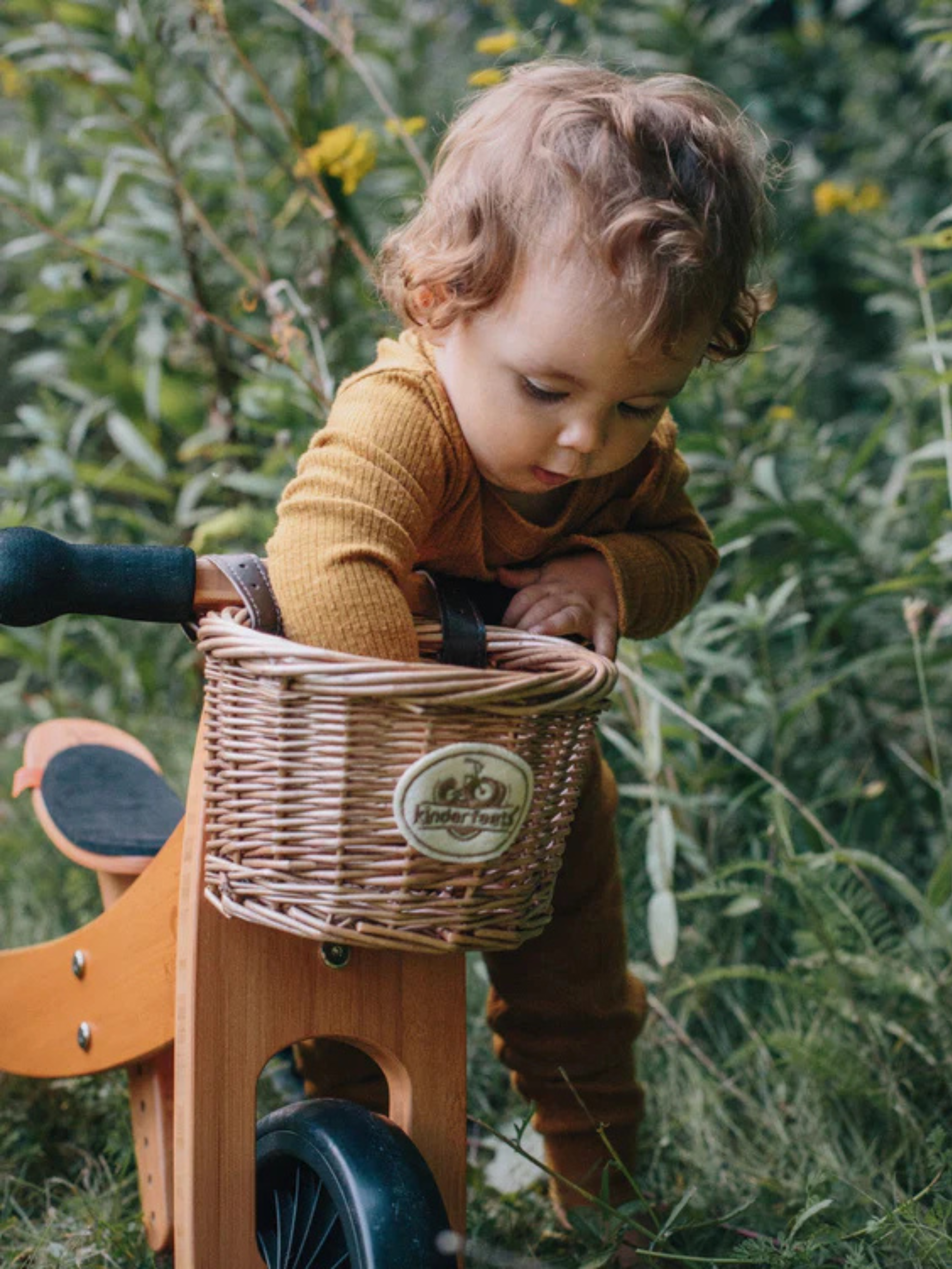 キンダーフィーツの手編みラタン製バスケットには、おもちゃ、ぬいぐるみのお友達、そして新しく見つけた宝物がすべて入ります。